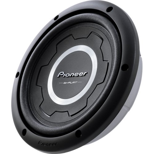 This 10-inch shallow subwoofer handles 1200 watts max., 300 watts nominal power, and delivers deep bass with top-notch sound quality thanks to features like Pioneer's extremely strong and lightweight Interlaced Basalt/Carbon Fiber Reinforced IMPP Cone.